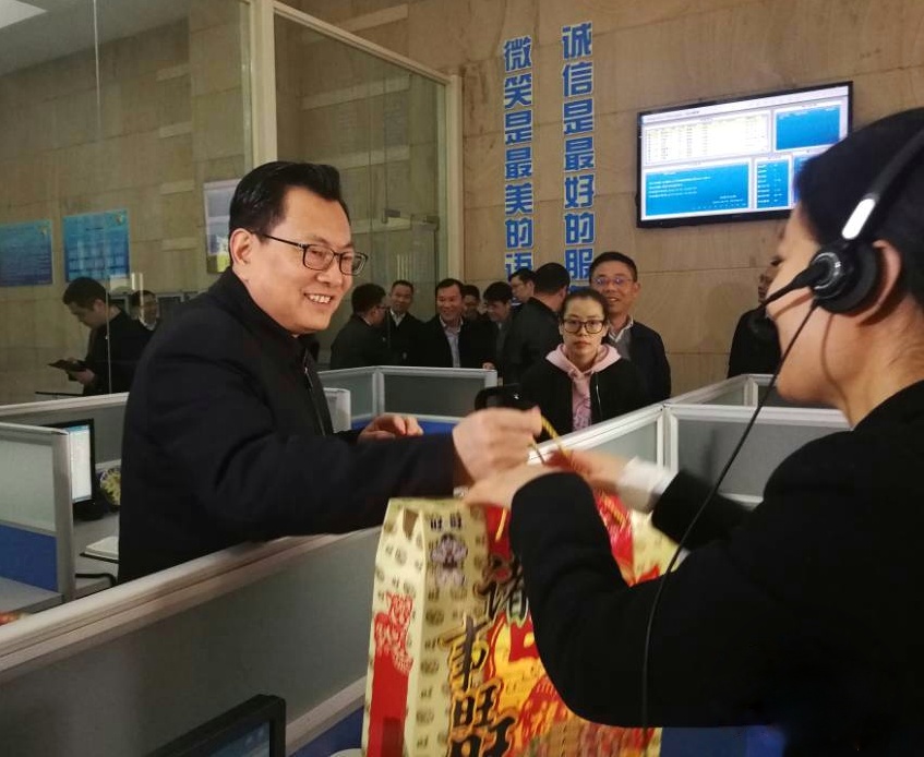 在96390清泉热线,裘东耀询问热线人员配备情况,并指出宁波的大力发展离不开城市供水职工的辛勤付出。随着生活水平不断提高,百姓对供水服务提出进一步要求。供水人要倾听百姓的声音,把民生工程做实、做细、做优、做强,把为人民服务落到实处。最后,裘市长双手作揖,代表市委、市政府向全体供水职工表示衷心的感谢并致以节日的问候,祝大家新年快乐、诸事顺利。